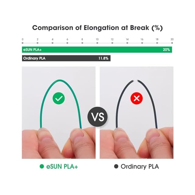 【強化された耐久性のPLA+】PLA+は通常のPLAを強化したバージョンです。より高い強度と優れた靭性を持ち、折れにくい特徴があります。再生可能な植物資源から得られるデンプン原料を使用しており、環境に優しく無毒で、人や環境に害を与えません。
