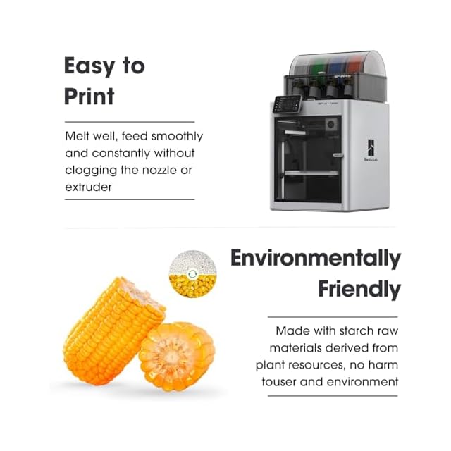 【強化されたPLA+】PLA+は、通常のPLAを強化したバージョンです。より高い強度と優れた靭性を持ち、簡単に壊れません。再生可能な植物資源由来のデンプン原料を使用しており、環境に優しく無毒で、人間や環境に害を与えません。
