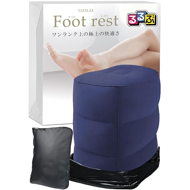 [TAVILAX] フットレスト 飛行機 【るるぶ掲載&現役CA監修】 快適グッズ 車 足枕 足置き 車中泊マット (TAVILAXネイビー)