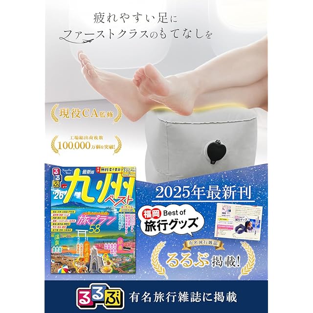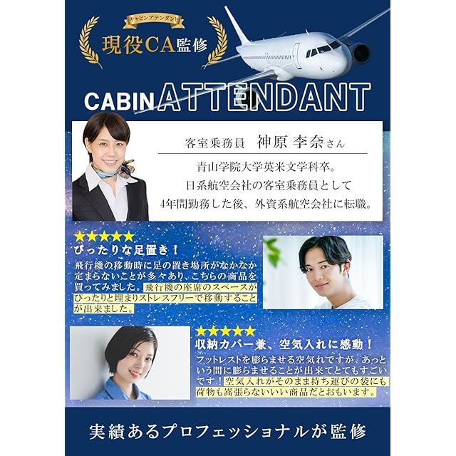 【現役CA監修のフットレスト】 機内の過ごし方のプロとも言えるCAが監修するフットレストだからこそ、ベストなエアークッションに仕上がりました。飛行機内での空間がより一層に楽しい思い出となるよう座席で心地よく過ごせる設計にこだわりました。エコノミー症候群 予防グッズとしてもご好評をいただいております。国内旅行 海外旅行問わずご使用可能です。