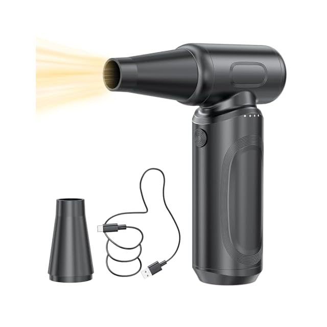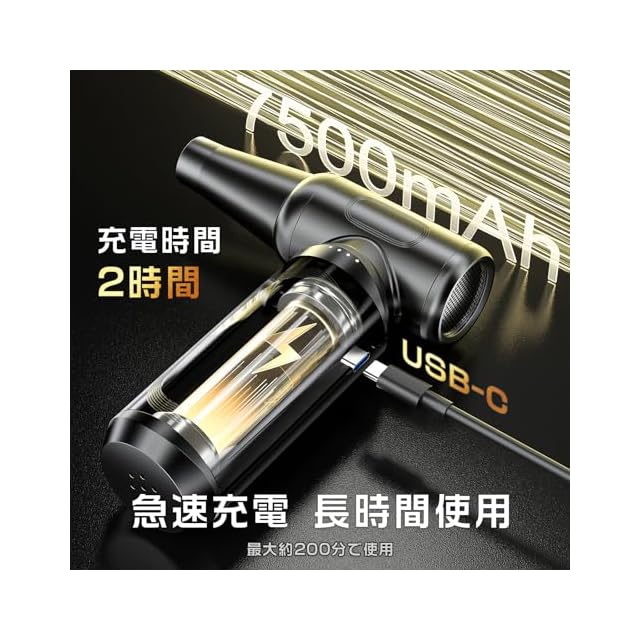 エアダスター 電動ブロワー ブロアー 洗車 150m/sな風速 4段階風量調整 300000RPM 超強力 7500mAh USB-C充電式 ブラシレスモーター 小型 PC掃除 空気入れ コードレス 日本語取扱説明書 黒 | つむぎ屋