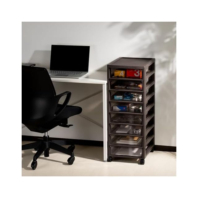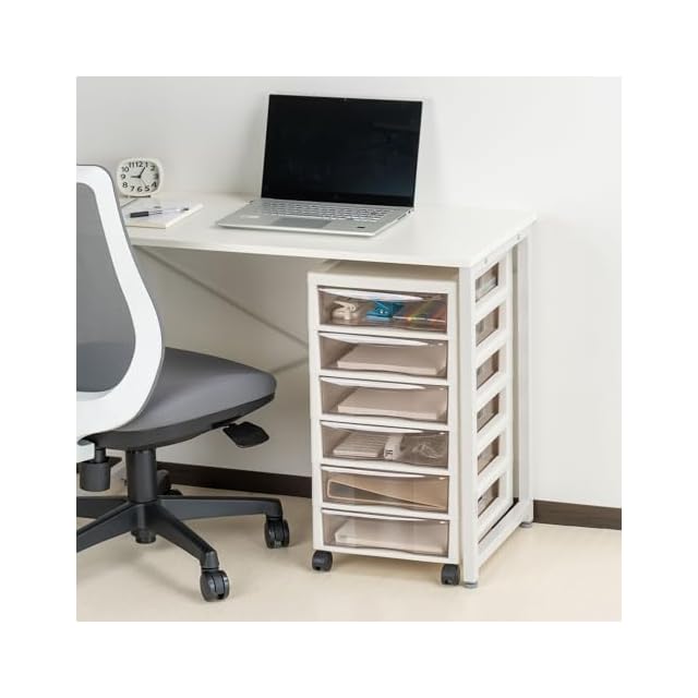 A4用紙の整理、リビングやデスク周りの小物収納に最適。キャスター付きで移動ラクラク。スモークの引出しで適度に見えて確認が可能。
