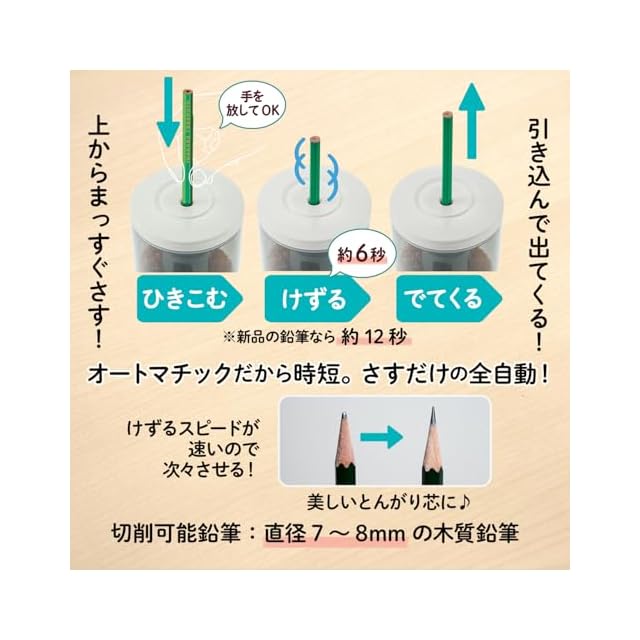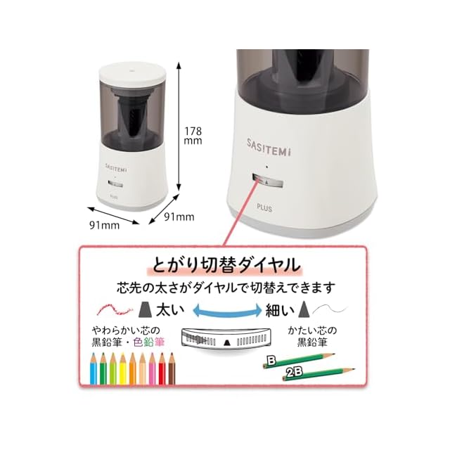 カラー:アイボリー/本体サイズ:幅91×奥行91×高さ174(mm)/質量:約420g(本体)/切削可能鉛筆:直径7~8mmの木質鉛筆