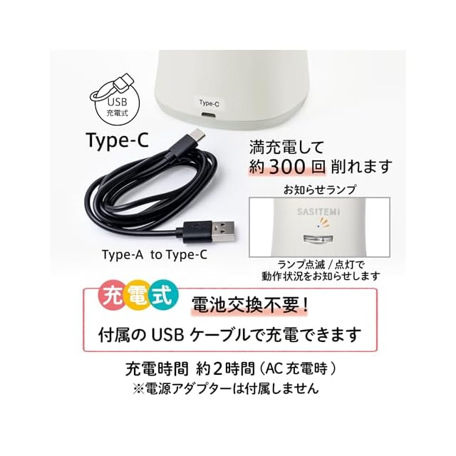 電源:リチウムイオン充電池 ※満充電から300本削れます。