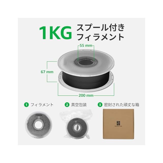 注:この製品はBambu PLAマットフィラメントで、スプールは含まれていません。使用前にスプールを装着してください。Bambu 再利用可能なスプールまたは自分で印刷されるスプールを利用できます。