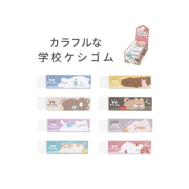 【特徴1】ふわっと丸みのある、かわいいあにまる柄の学校消しゴム!