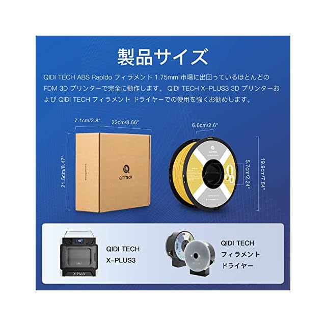 【ABSフィラメント 1.75 - 高速印刷に最適】ABS Rapidoは、QIDI TECHが新たに開発した新しいタイプのabsフィラメントです。 印字速度は最大400mm/sと高速印字にも対応。 QIDI TECH が新たに開発した X-Plus3 3D プリンターでの使用を強くお勧めします。