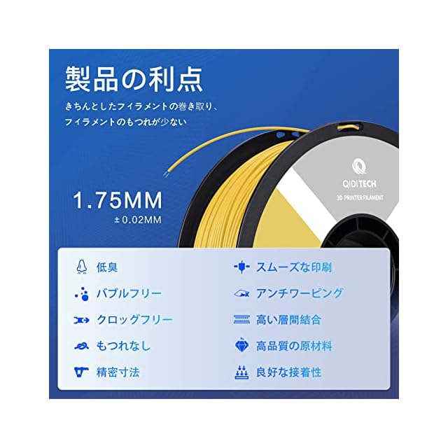 【寸法精度と一貫性】直径1.75mmのQIDI TECH 3DプリンターABSフィラメント、寸法精度+/- 0.03mm。 厳格な公差と完璧な寸法精度により、ABS Rapido フィラメントのスムーズで一貫した供給とエクストルーダーへのスムーズな流出がされ、より均一に仕上がります。