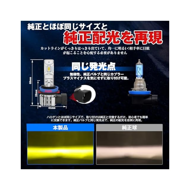 【コンパクトで簡単ポン付け可能】ご自身でバルブを交換したいですが、バルブ交換の経験がないですか?Perrace h8 led フォグ・h11 led フォグランプはは初心者向けの簡単装着バルブです!純正ハロゲンバルブと同じサイズで、取り付けは純正バルブを外し、本製品に交換してカプラーを接続するだけです。複雑な配線は一切不要です!