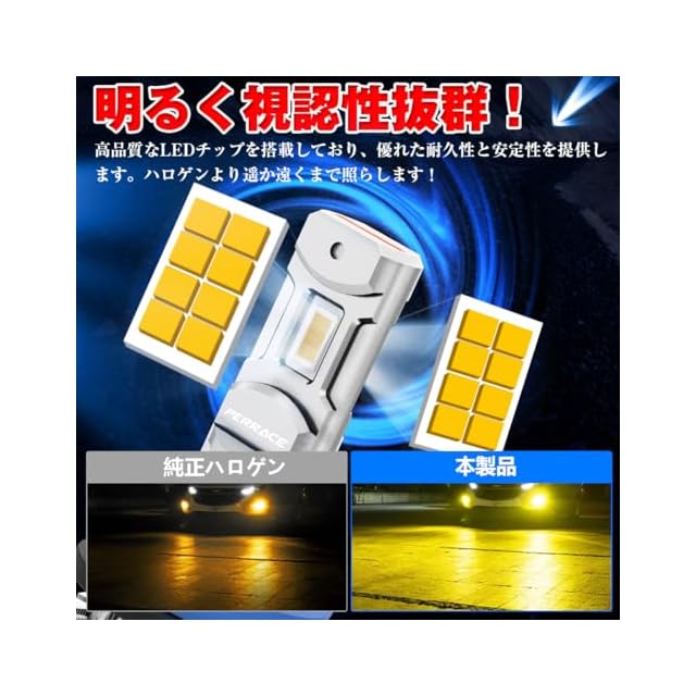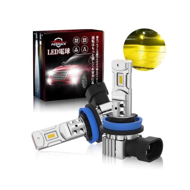 【明るさ革命!!】Perrace h8 led フォグ 黄色 h11 led フォグランプ イエロー 3000K 爆光 結露防止 無極性 ポン付け 12V 車用 車検対応 明るい LEDバルブ 2個セット | つむぎ屋