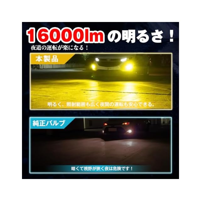 【16000LMの明るさ、圧倒的な配光を実現】Perrace h8 led フォグ・h11 led フォグランプの発光点は純正ハロゲンと完全に一致し、ハロゲンの照射原理を参考に、ハロゲン球に近い完璧な配光を実現しました。カットラインがあるため、対向車などに迷惑な眩しさがなく、照射範囲と明るさも圧倒的です!16000LMの明るさ、3000Kの色温度で雨の日でも霧の日でも視界が明るく運転が楽になります。