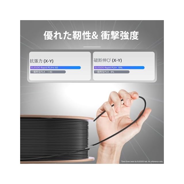 【強化された強度と靭性】ELEGOO RAPID PLA plusフィラメントは、高い曲げ弾性率と破断伸度を特徴とし、脆さやひび割れに強く、機能部品の印刷に優れた結果をもたらします。