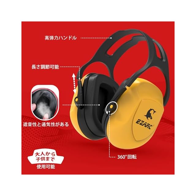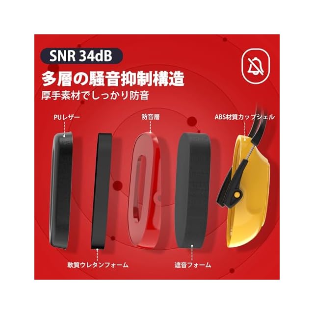【ABS材質】イヤーマフは、耐衝撃性に優れたABS材質のカップシェルを使用しており、防音層と厚手の遮音フォームにより、高い遮音効果を実現できます。
