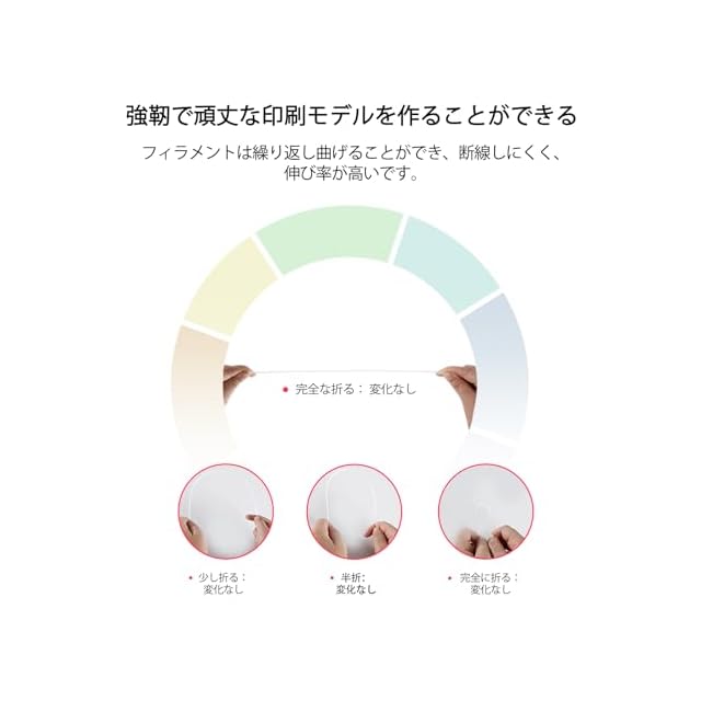 【寸法精度&一貫性&靭性が強化】直径1.75 mm、寸法精度±0.03mm、最小限の寸法公差と反りにくい特性が、一定の出力品質と安定したプリントを実現します。靱性が強化され、より安定したモデルとなっています。きれいに整列し、結び目がなく、印刷速度が速いです。