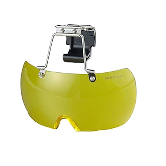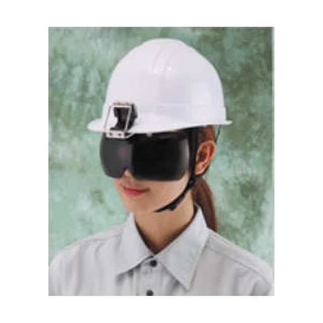 帽子の種類は問いません、ヘルメットや帽子のヒサシに差し込むだけ、視界が広いアール形、レンズはポリカーボネート樹脂製、