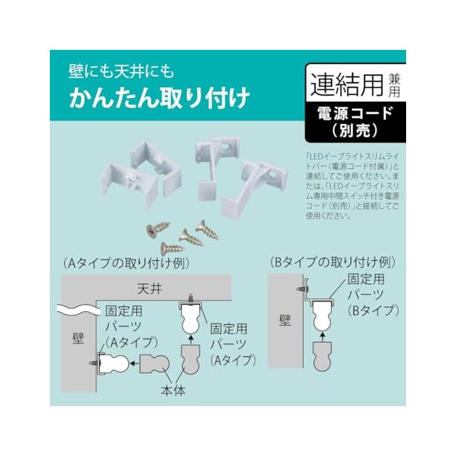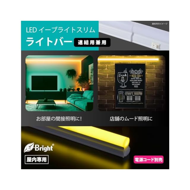 ≪ご注意≫※ 本品は単品ではご使用になれません。(電源コードは付属していません。)※ 「LEDイーブライトスリム ライトバー(電源コード付属)」と連結してご使用ください。または専用オプショナルパーツの「LEDイーブライトスリム専用中間スイッチ付き電源コード(別売)」と接続してご使用ください。