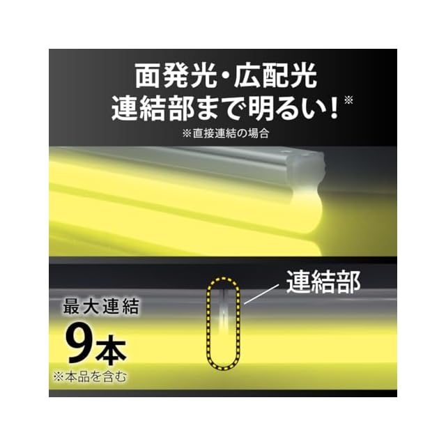 【注意事項】連結する場合は、必ず当社製「LEDイーブライトスリム ライトバー」シリーズのみをご使用ください。「LEDイーブライトスリム ライトバー」シリーズ以外は使用しないでください。また、長さの異なる製品を混合して連結する場合でも最大9台まで。10台以上の連結は行わないでください。