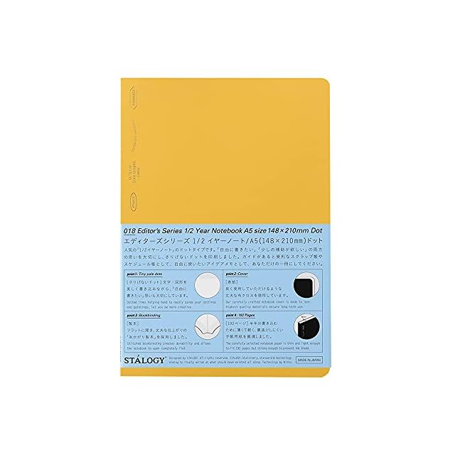 ニトムズ STALOGY ノート 1/2イヤーノート A5 ドット方眼 イエロー S4154