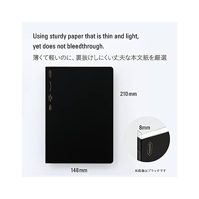 【商品説明】ゆったりと文字を書き込める7mmの罫線は、限りなく細く薄いグレー色の印刷で書き込む文字を邪魔しません。紙面の上下についた三角形のガイドをつなぐと、マージン罫として紙面を2分割、4分割して使用することができます。薄い紙を採用しているため、全部で368ページあるとは思えない薄さで、かさばらず持ち運べます。