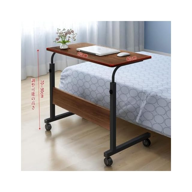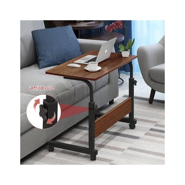 YOOVEE サイドテーブル キャスター付き 昇降式 移動式 サイドテーブル 介護用テーブル パソコンデスク ソフ オフィスデスク 高さ調節 在宅勤務 テレワーク 移動式 勉強机 仕事デスク おしゃれ 幅60cm×奥行40cm×高さ70~90cm 日本語説明書付き(ヴィンテージ)