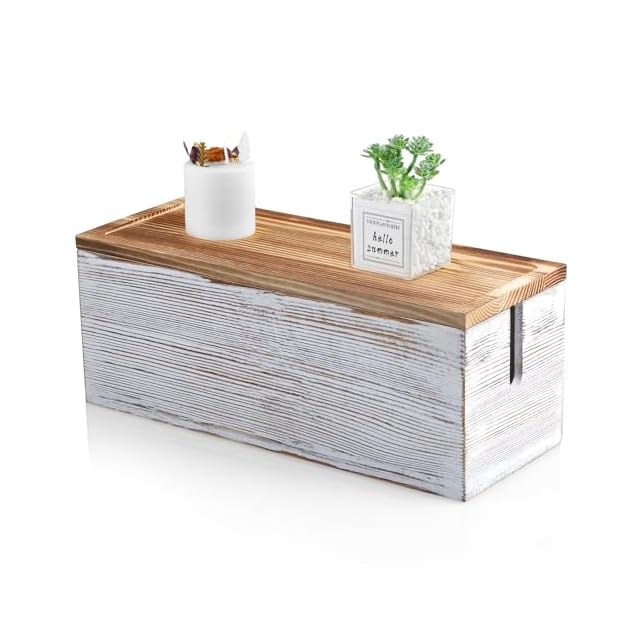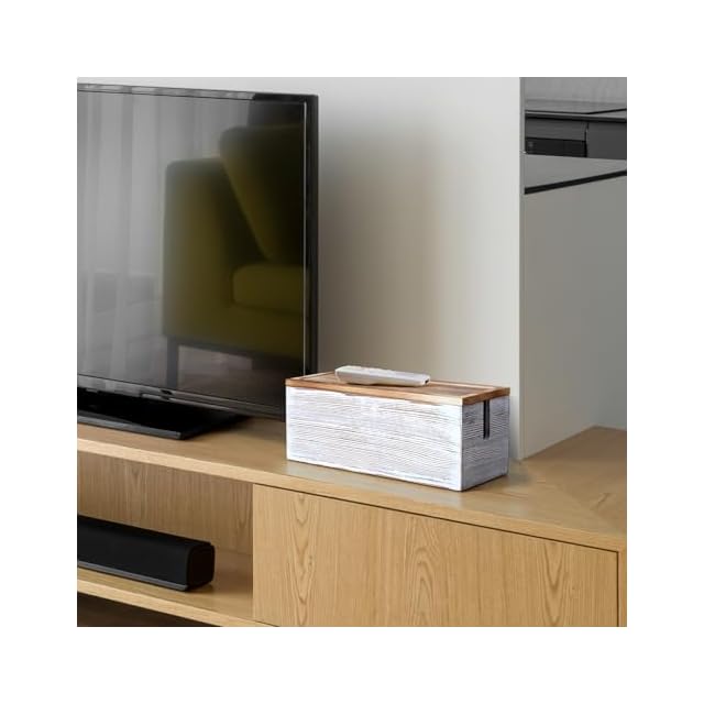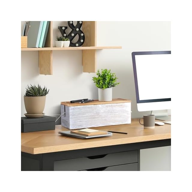 ISHU ケーブルボックス 大型 配線隠し ケーブル 収納 コード隠し コンセントボックス 配線ボックス コンセント収納 コードケース 配線 ケーブル隠し コード まとめる 木製 整理収納 電源ボックス ルーター収納ボックス (ヴィンテージホワイト)サイズ:約W39XD14XH13cm | つむぎ屋