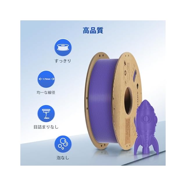 ANYCUBIC PLAフィラメント 3Dプリンター用 造形材料 pla 高密度 高寸法精度 3dプリンター フィラメント 環境保護 純正材料 1.75mm 寸法精度±0.02mm 目詰まりなし 真空パッケージ DIY 家庭 学校 事務所等向け fdm 3dプリンター用 3dペン用 造形素材 1kg (オピュレンスパープル) | つむぎ屋