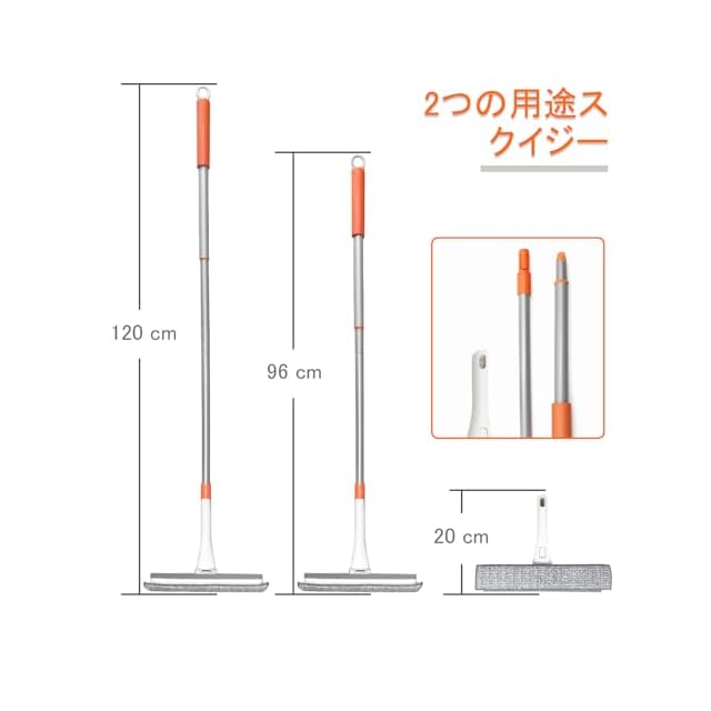 2 in 1窓掃除 ワイパーは: JEHONNフロアワイパーロングハンドルには、窓をピカピカに保つために必要なすべてを提供します。マイクロファイバーパッドは、窓の表面にクリーナーを塗布するのに役立ち、ゴムブレードは、筋をつけずに素早く水をかき出します。