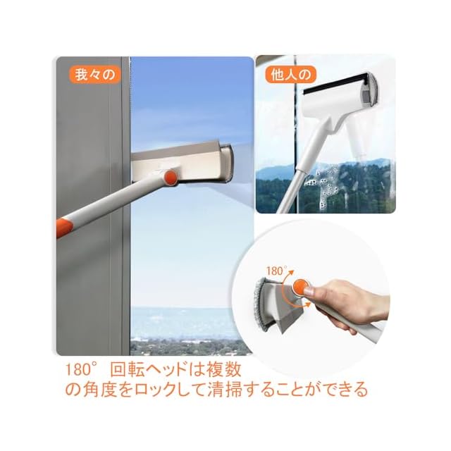 163cm軽量アルミロングハンドル: ガラスワイパーには4段のアルミ製延長ポールが付属しており、163cmまで伸ばすことができます。はしごに登ることなく、窓の上まで楽に届きます。
