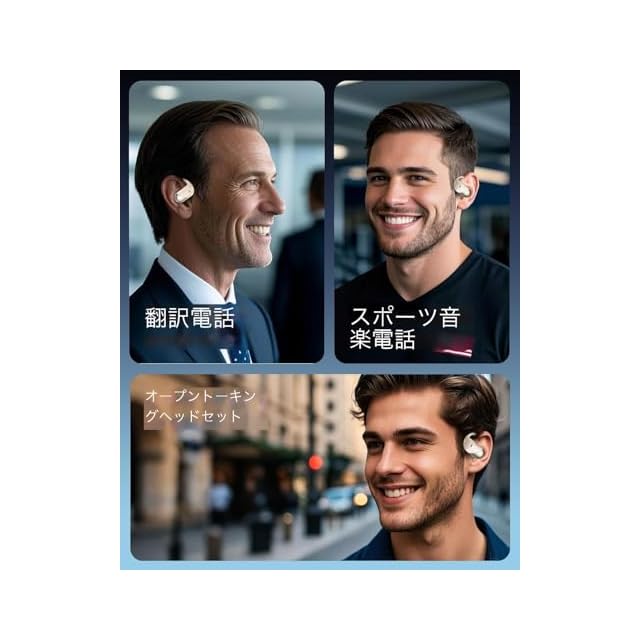 【耳を塞がない、空気の振動で音楽を】この空気伝導イヤホンは、骨伝導イヤホンの技術革新を受けて第2世代にグレードアップした新商品です。本製品は指定の方向に音を伝える技術を利用し、空気で音を伝えます。耳に入らないオープンイヤーデザインという骨伝導イヤホンの特徴を生かしながら、「振動に慣れないしないと聴こえない」、「電力の消費が早い」、「本体が重たい」などの問題点を改善し、耳に優しくなります。また、外部の音を聞きとりやすい空気伝導型イヤホンのため、ランニング中など夜間の道も危険を察知しやすい。移動中でも車や自転車、人の足音などが聞こえるため安全で、駅や電車内でアナウンスを聞き逃しません。更に、音楽を流したままでも会話ができるので、買い物の際にレジでわざわざイヤホンを外す手間が省けます。メガネをかけていても快適に装着できるイヤホンです