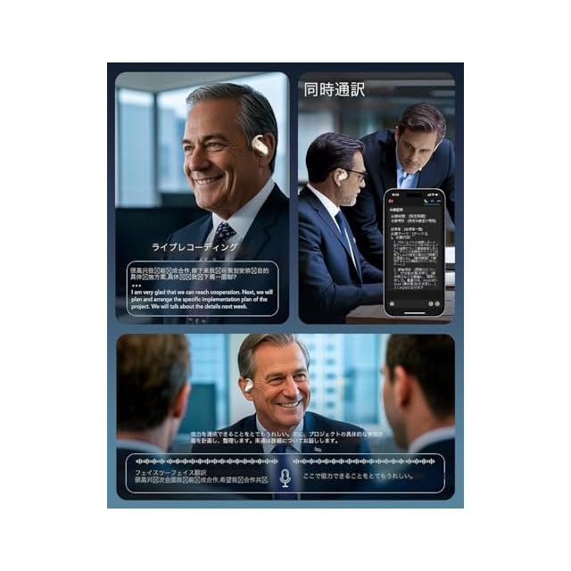 【2025最新イヤホン型翻訳機&翻訳・音楽で活躍】最新の生成AI技術を採用しており、文脈に沿った正確な翻訳を提供します。特にビジネスや専門分野で使用される専門用語やニュアンスを理解し、自然で正確な翻訳を実現します。144種類の言語に対応し、ユーザーのニーズに合わせた高精度な翻訳と通訳をリアルタイムで実現します。カスタマーサポート、ビジネスミーティング、オンラインカンファレンス、観光案内など、さまざまなシーンで即座に活用できます。直感的で使いやすいインターフェースを備えており、誰でも簡単に利用できます。スマートフォンアプリを通じて、どこからでもアクセス可能です。翻訳機として使えるだけではなく、普通にワイヤレスイヤホンとして音楽を聴いたり、通話に使うことができます