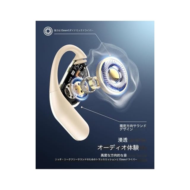 【HiFi高音質&ENCノイズ低減】本耳掛け式ワイヤレスイヤホンは超大型14.2ミリドライバーを内蔵しており、圧倒的な高音質を実現しています。低音域から高音域のバランスが抜群で、透き通るようなクリアサウンドを再生でき、1つ1つの音に存在感があり、コンサートホールで生演奏を聴いているかのような迫力を味わえできます。ENCノイズキャンセリング機能搭載、またマイク内蔵付き、通話中の雑音や周囲のノイズを抑制し、相手の声も聞き取りやすく快適な通話を実現します