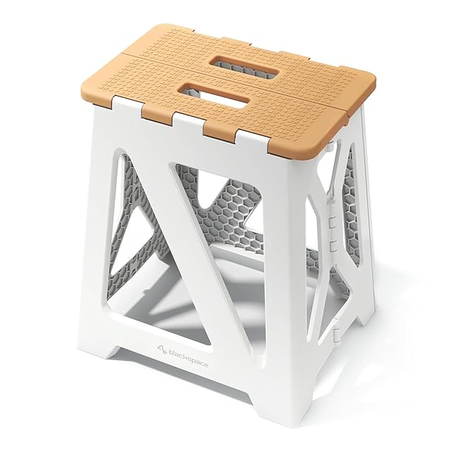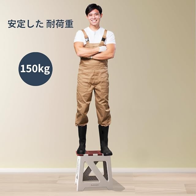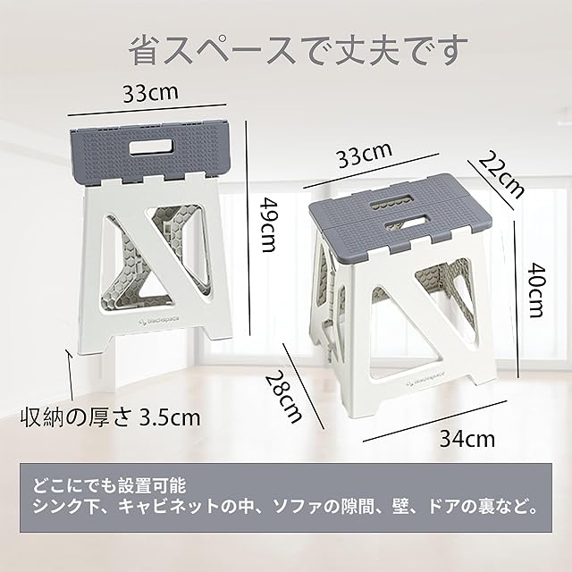 BLACKSPACE 折りたたみ椅子 高さ40CM ステップ台 スツール 踏み台 折り畳み チェア 脚立 滑り止め付 軽量 頑丈 室内 洗車 釣り 玄関 洗面所 耐荷重150kg [カーキ ホワイト]