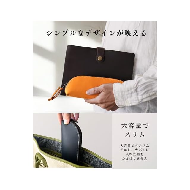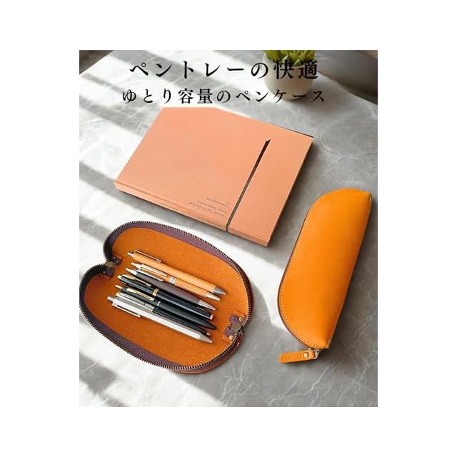[iaji] ペンケース 筆箱 革 大容量 スリム ペントレー のように使える おしゃれ シンプル (キャメル)