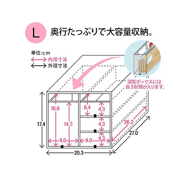 【深型ボックス内寸】W90×D262×H145mm 【小物トレー内寸】W90×D262×H43mm