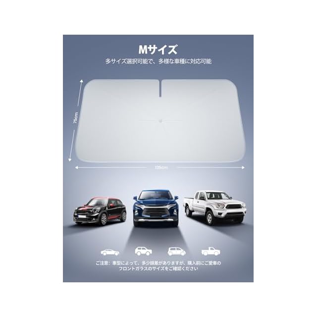 【様々な車に対応可能・幅広い用途】 製品の幅は135*75CMです(上端の長さ135cm、下端の長さ144cm)。普段駐車時の日除け用だけでなく、車中泊や仮眠時にプライバシーの保護に役に立てます。車サンシャードは、さまざまな車のニーズに対応するため、いくつかのサイズオプションが用意されています。 ❗❗ご注意:車種や形状をご確認いただいた上、お買い求めください。