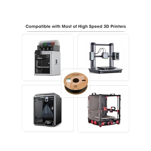 【高い互換性】:eSUN ePLA-CFは、Anycubic、Creality、VoronなどのほとんどのFDMプリンターと互換性があります。高速印刷に適しており、AnkerMake M5、Bambu Lab X1/P1P、Creality K1/Ender 7、Flsun V400、Raise3D Pro3/RMF500などの高速プリンターとも互換性があります。