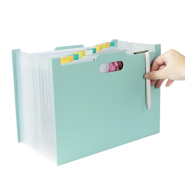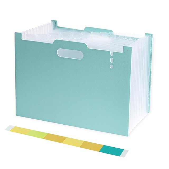 Tumosando ドキュメントファイル a4 大容量 加厚発泡PP ドキュメントスタンド のびる 13ポケット ジャバラファイル 持ち運び 蛇腹 区分けラベル付き 書類収納アコーディオンファイル 伸縮ファイル 自立式 (グリーン) | つむぎ屋