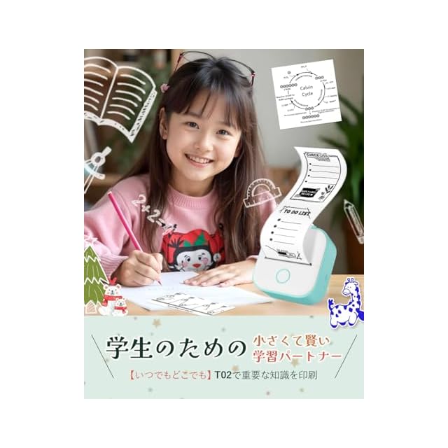 「T02サーマルプリンターはiOSとAndroidに対応しており、写真、学習メモ、ToDoリスト、DIYシール、収納ラベル、メモなどを印刷できます。友達、家族、子供へのプレゼントとして、実用的で楽しく使えます