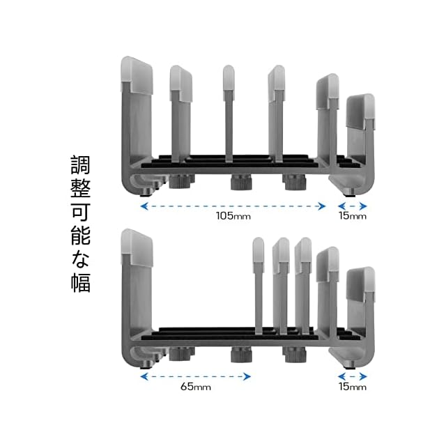 【幅調整】工具不要で、製品下部のネジを回すだけで、適切な幅に調節することができます。調節範囲:10 mm~65 mm