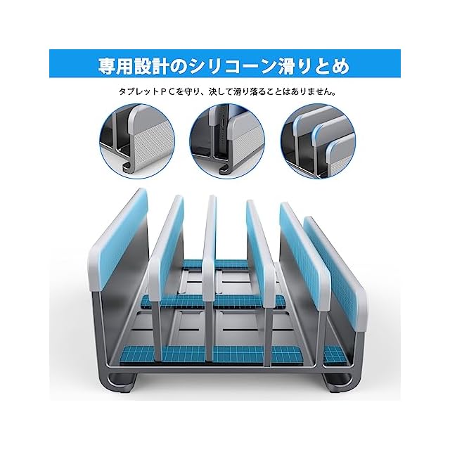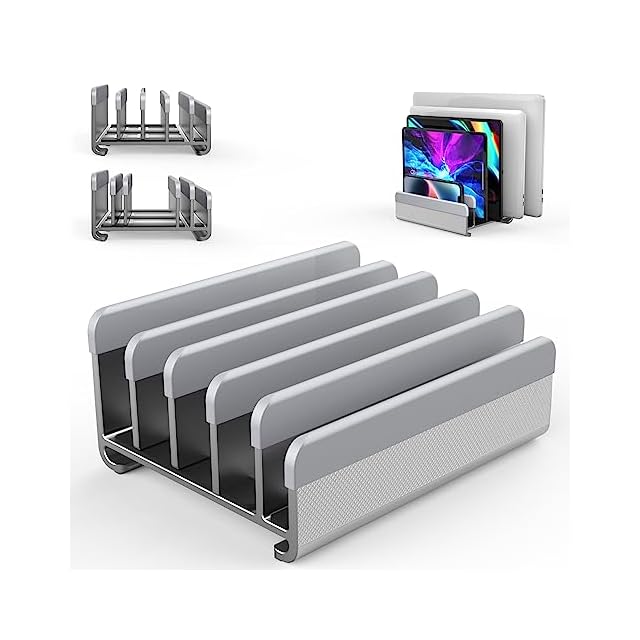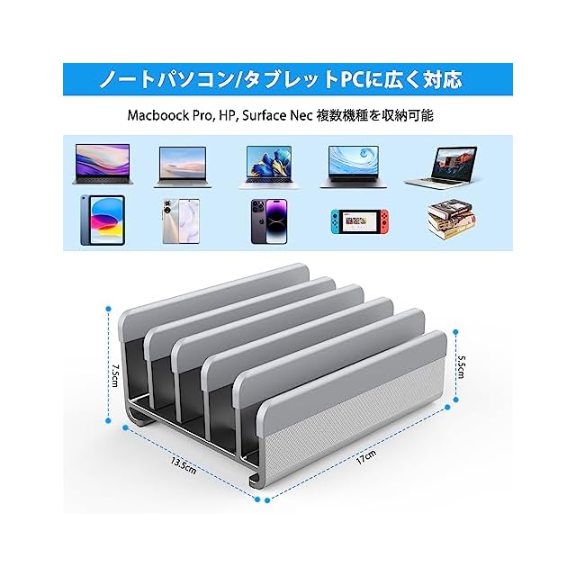 【最新版&5in1を実現】PC/タブレットPCを4台同時ストレージが可能に!それ以外、サイドにはスマホを収納できます。 当社のノートPCオーガナイザーは、3つのスライド式スタンドがあり、厚さの異なるノートPCを最大4台まで収納できるよう調整できます。 複数のノートPCを収納するのに最適なノートPC収納スタンドです。