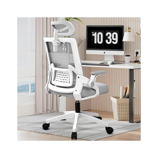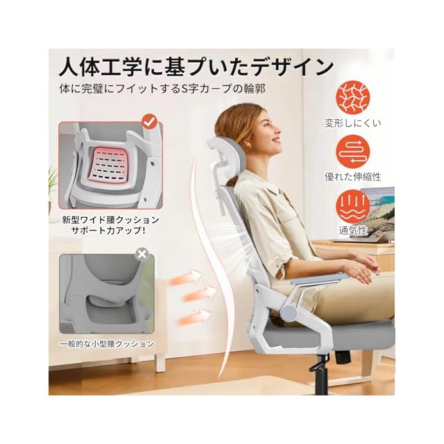 Sezlife オフィスチェア デスクチェア 人間工学 テレワークチェア 疲れない 椅子 腰サポート 跳ね上げ式アームレスト 3Dヘッドレスト ロッキング機能 高反発クッション PCチェア 通気性メッシュ ゲーミング/勉強/事務用 おしゃれ パソコンチェア (グレー)