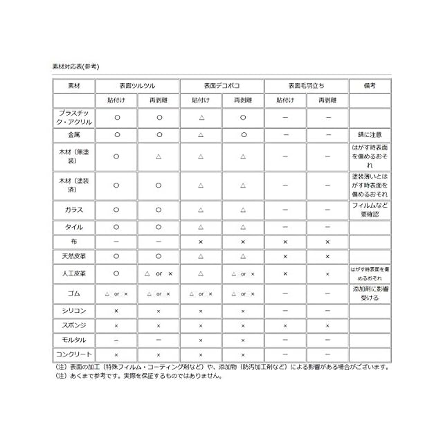 【ご注意】貼る対象の素材によっては、貼れなかったり、すぐに剥がれる場合があります。セロファンテープを、何度か貼ってはがせる場所にはご利用いただける場合が多いようです。