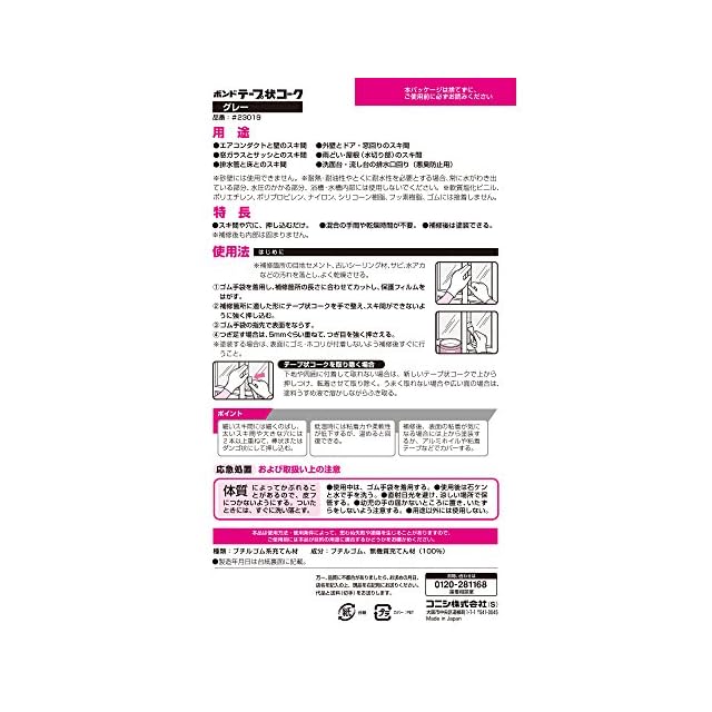 用途:洗面台・流し台の排水口回り(悪臭防止用)、エアコンダクトと壁のスキ間、外壁とドア・窓回りのスキ間