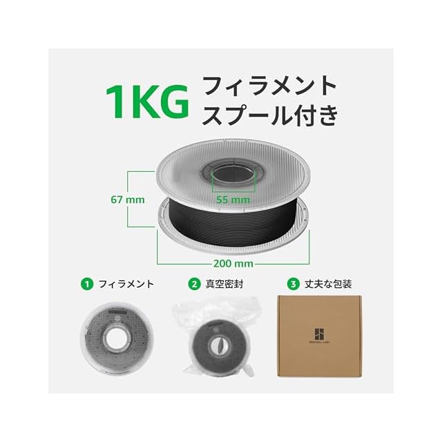 高精度: 1.75mm±0.03の精度で、安定した押出で完璧な造形を出せる