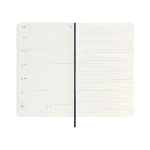 モレスキンの18か月 ウィークリー ノートブック ダイアリーは、7月から12月までのプランを記すことができます。左ページにその週の予定を、右側の罫線入りページにはメモやアイディアを記入できます。学生の方はもちろん、ビジネスシーンにもぴったりのデザインです。
