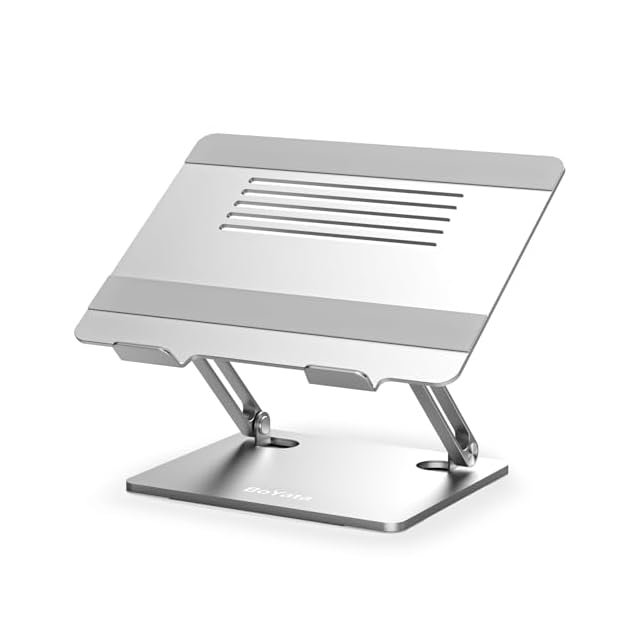 BoYata ノートパソコン用ラップデスク パソコンスタンド PCスタンド PCアクセサリ 人間工学設計 安定性 無段階高さ調整 姿勢改善 折りたたみ式 滑り止め 炭素鋼素材 在宅勤務 15インチ以下対応 シルバー | つむぎ屋