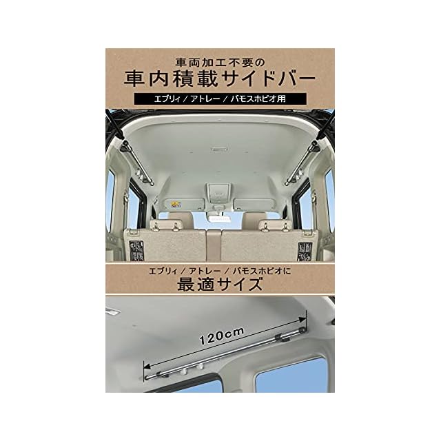 エブリイなどに最適な120cmサイズ(1本あたりの最大積載量:10kg)