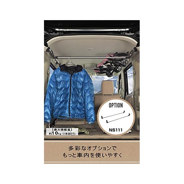 車内に付けるサイドバー。アシストグリップを外して簡単装着アウトドア、レジャーなどに活躍別売ハンガ-バー(NS111)使用で、いろいろな物を積載可能日本製