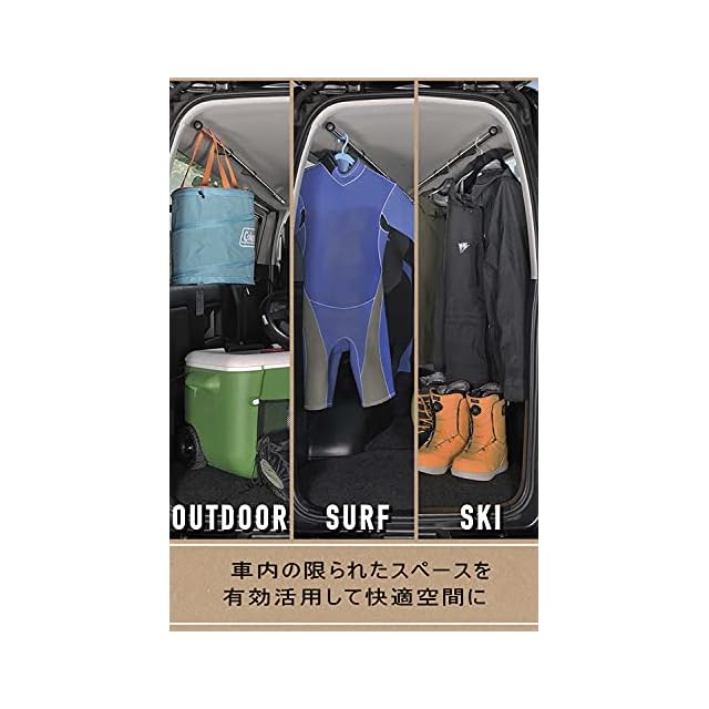 サイドバーを取付けることによって、さまざまな専用オプションが使えます。車中泊の際に軽量な荷物を車輌上方の空間に入れて有効活用できます。サーフボードなどの長尺物も車内にすっきり収納できます。