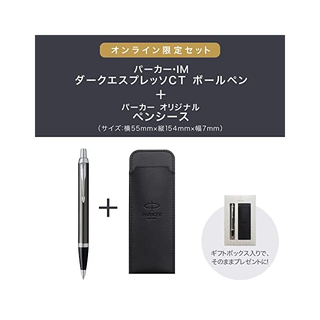 セット内容…「パーカー・IM」のボールペン、パーカー オリジナルのペンケース(素材:PU)、ギフトボックス(素材:紙)。